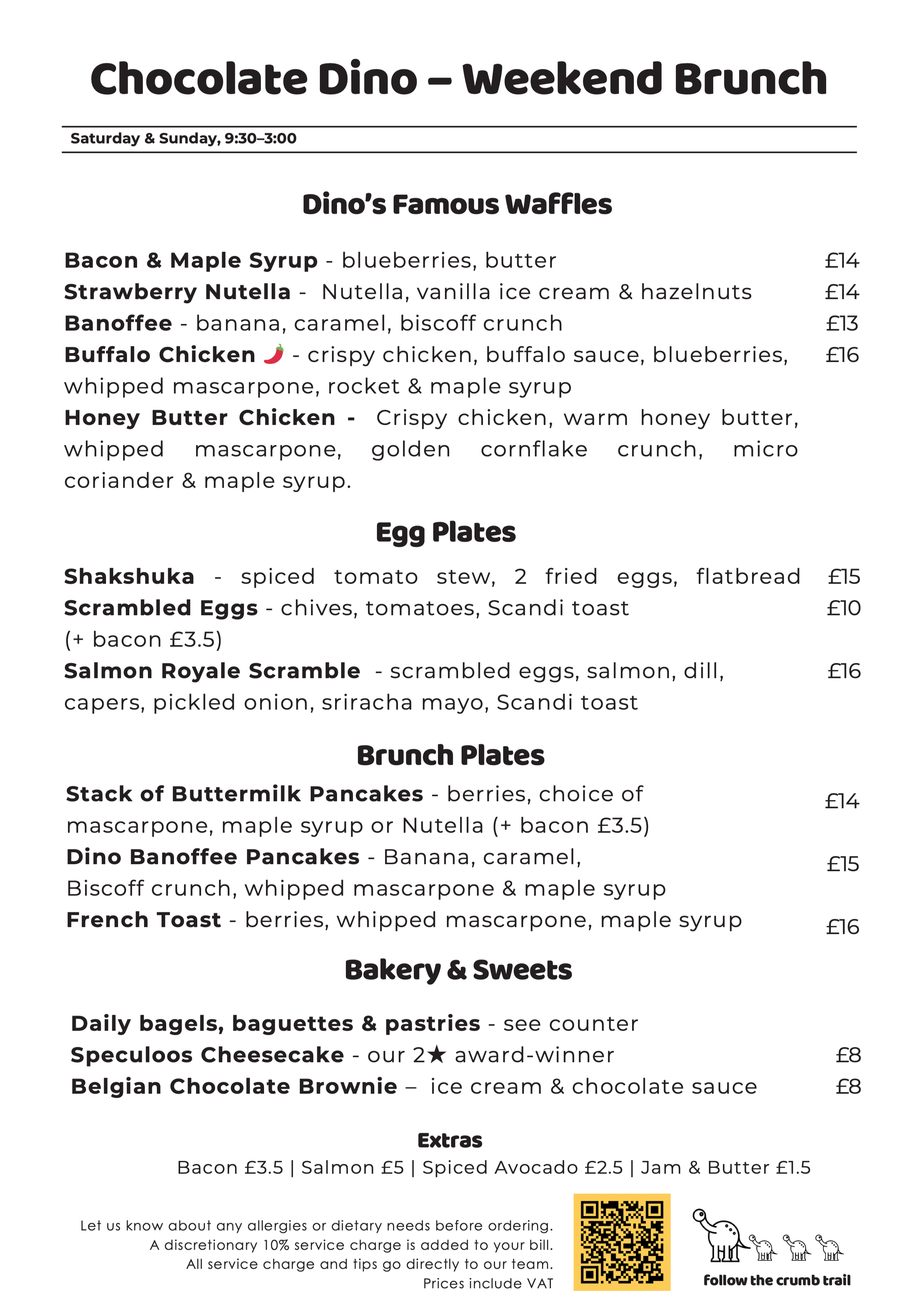 Our famous weekend brunch, served fresh at our Kennington Road bakery every Saturday and Sunday.