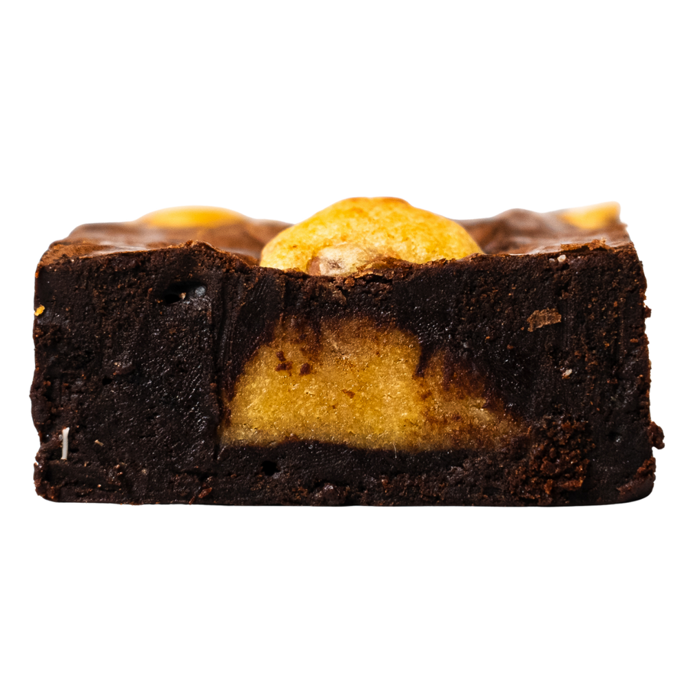 A fan favourite! It's two of the things we do best combined into one delicious dessert. A dark and milk Belgian chocolate brownie laced with milk chocolate cookie dough. The perfect combination for those who can't choose between a brownie and a cookie!